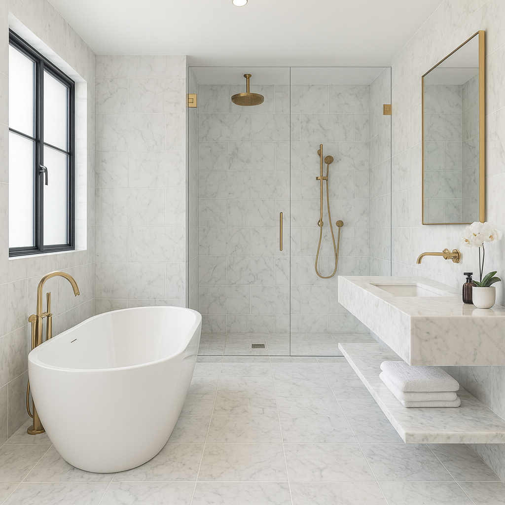 Bianco Carrara is a truly classic Italian marble. Quarried on Italy’s western coast in the Province of Carrara north of Pisa the material was used in Michelangelo’s Statue of David and has continued to be the marble of choice throughout the modern era. It has an all so elegant white background and classic grey veining.